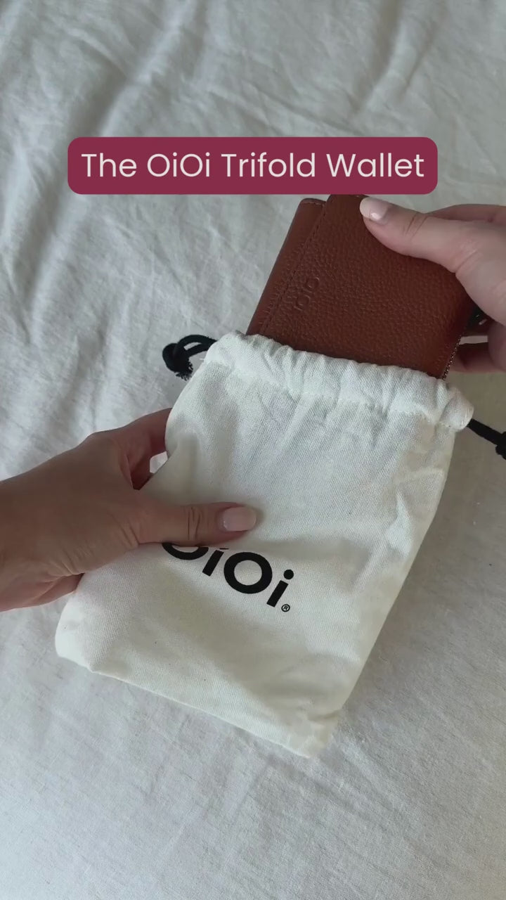 The smart trifold design keeps everything organised and compact, with a snap closure and our signature OiOi embossed logo for a refined finish.