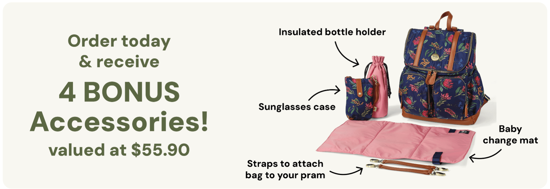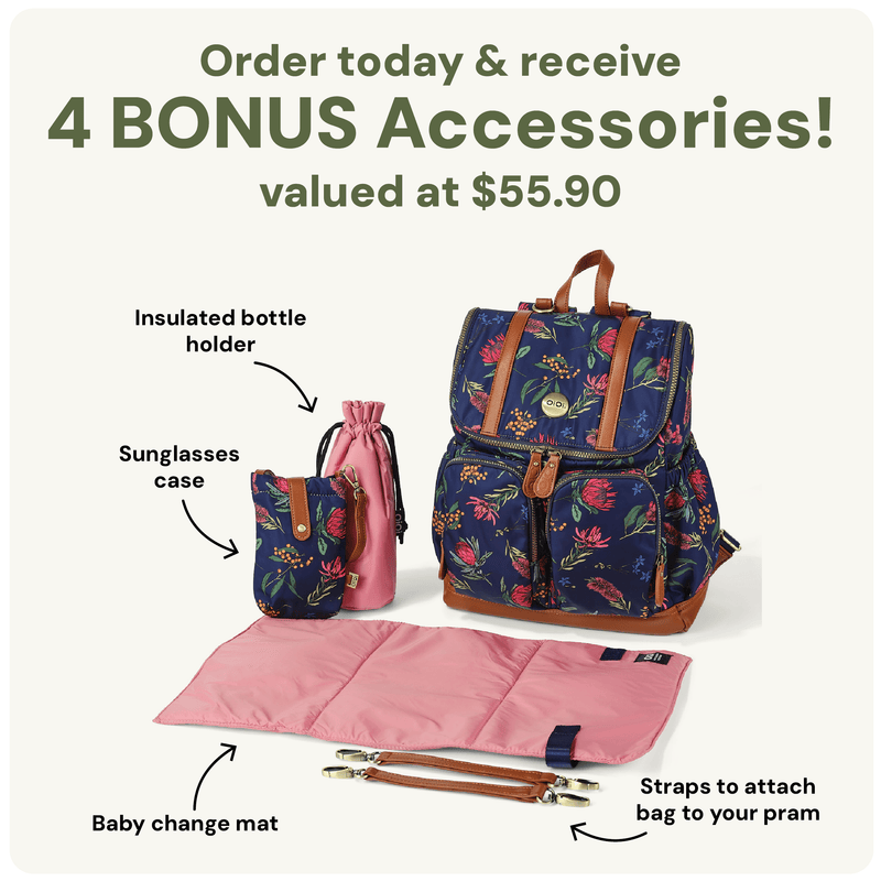 It includes four bonus accessories, eight pockets (including insulated bottle pockets), and a spacious 20L capacity for effortless organisation.