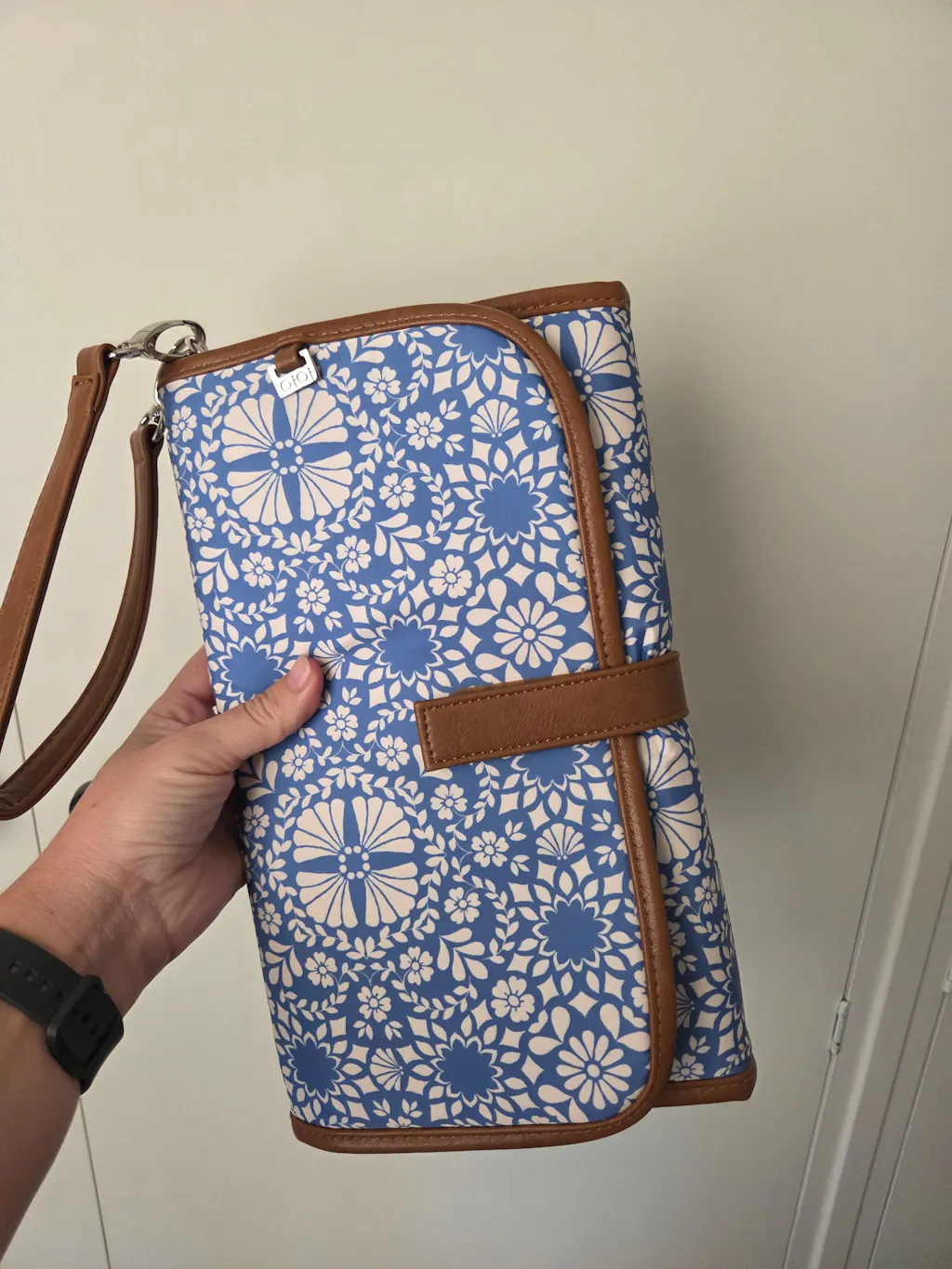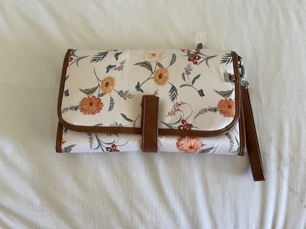 Our best-selling clutch folds out to reveal a padded mat to change baby's nappy on the go, a storage pocket for your nappies and a zip compartment for wipes & creams.