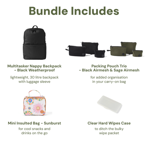 Baby & Toddler Nappy Bag Bundle – Weatherproof, Sunburst & Airmesh