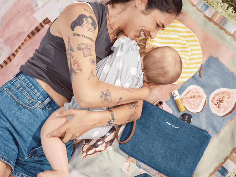 The "Mum Stuff" pouch gives you a dedicated spot for your own essentials - so you're not digging through baby items to find your own things. Paired with the matching " I Love Being Mum" denim cap. A little bundle just for her.