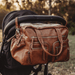 It can be worn over your shoulder, cross-body style with the included messenger strap or be clipped onto your pram using the provided stroller clips.