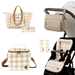 Blending our stylish Beige Gingham print with the Oat Vegan Leather, it is perfect for park lunches, daycare drop-offs and family outings. With an insulated lunch bag for snacks and meals, a fold-up tote for extras and a pram caddy to keep your essentials neatly arranged, you will always have what you need close at hand.