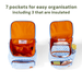 Inside, there’s plenty of space for everything from a lunchbox and drink bottle to comfort toys and change of clothes. Clever internal pockets help keep things organised, including a secure zip pocket for medicines or valuables. The front pocket and two side pockets are insulated, perfect for keeping snacks and drinks cool throughout the day.
